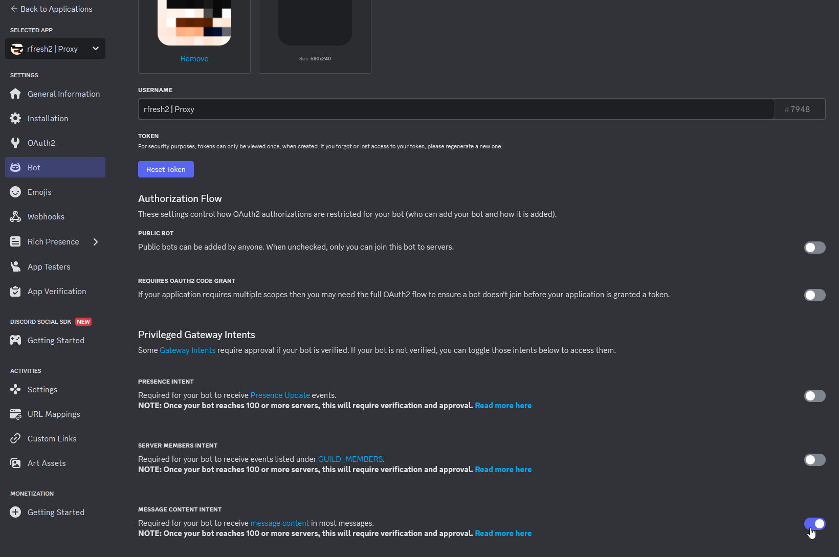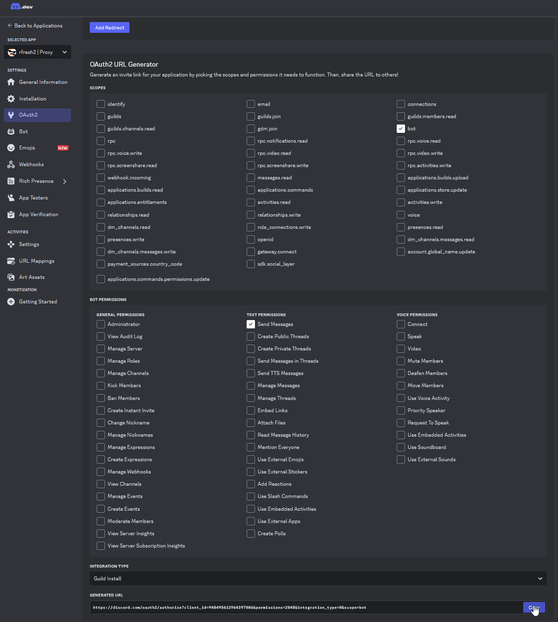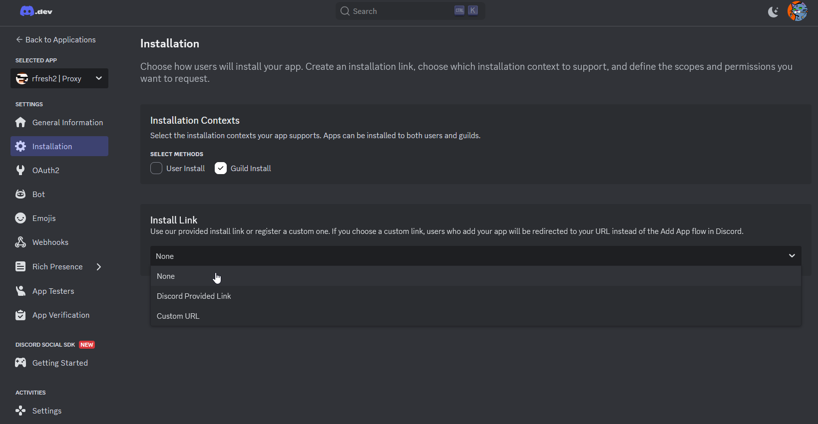 Install Linkto None Guild Installshould be checkedUser Installdoesn't matter.