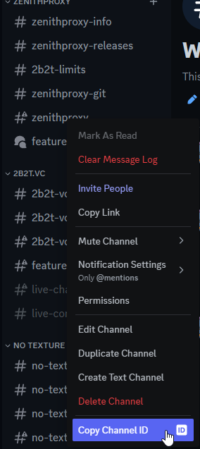 (Optional) Then create another channel for ZenithProxy's chat relay (live chat)